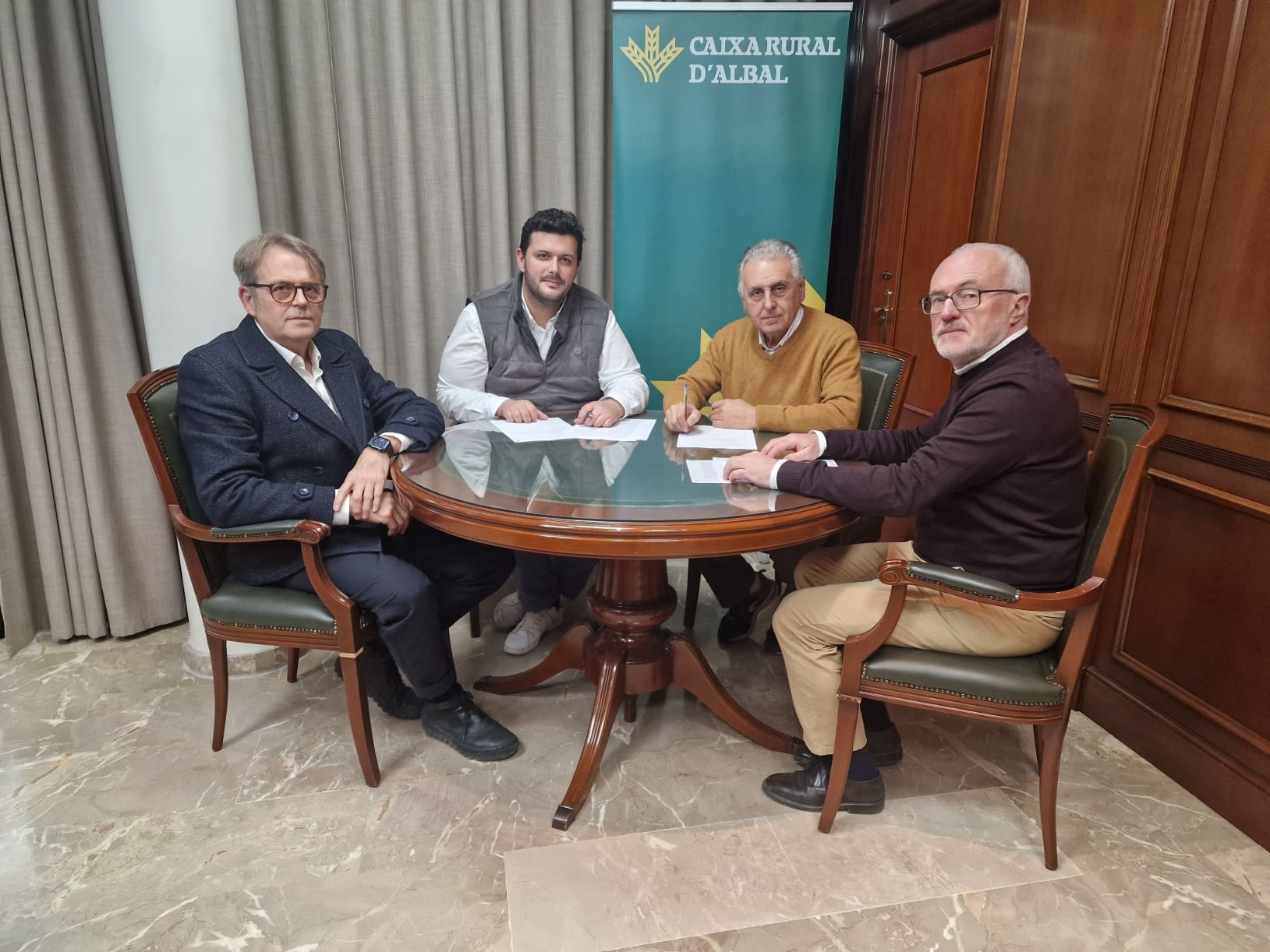 La firma del convenio, en la que estuvieron presentes el alcalde de Albal José Miguel Ferris, el presidente de Caja Rural de Albal Antonio Martínez Vila, el director general de la entidad Miguel Chilet Puchalt, y el secretario del Ayuntamiento Antonio Montiel, tuvo lugar en el ayuntamiento de Albal, el pasado viernes 27.